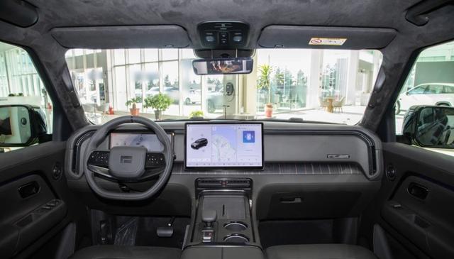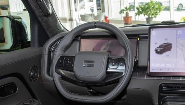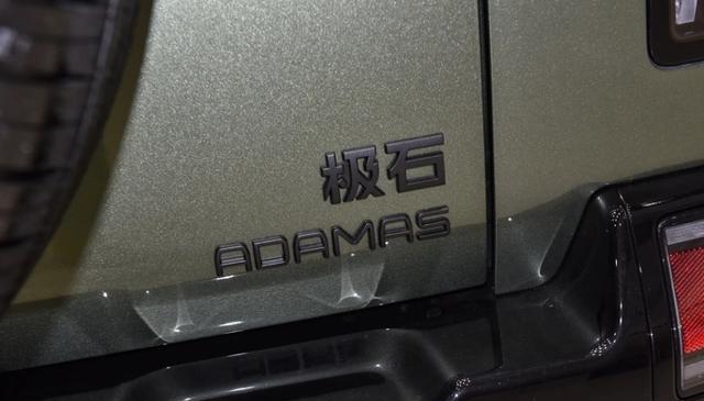 先说这面相,极石ADAMAS在原先硬朗的方盒子造型上做了些精修。车身同色的前格栅边框、封闭式的前杠细节,配上新的21英寸大轮毂,尤其是新增的“流沙金”车色,让它少了几分粗犷,多了几分精致和户外装备的质感。它不像理想L7那样用流畅圆润的线条传递温馨的家庭感,而是用一种更方正、更强调体量感的方式,彰显自己的“硬派豪华”身份。开它出去,别人不会认错成理想,这就是它设计上成功的第一步。